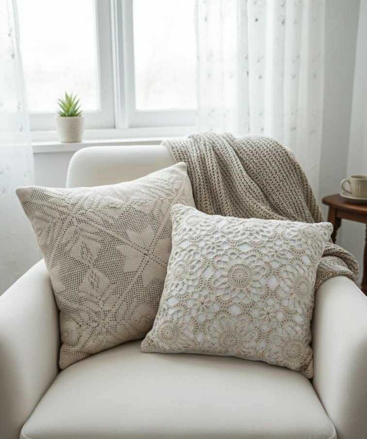 Tığ İşi El Emeği Dantel Kırlent Kılıfı