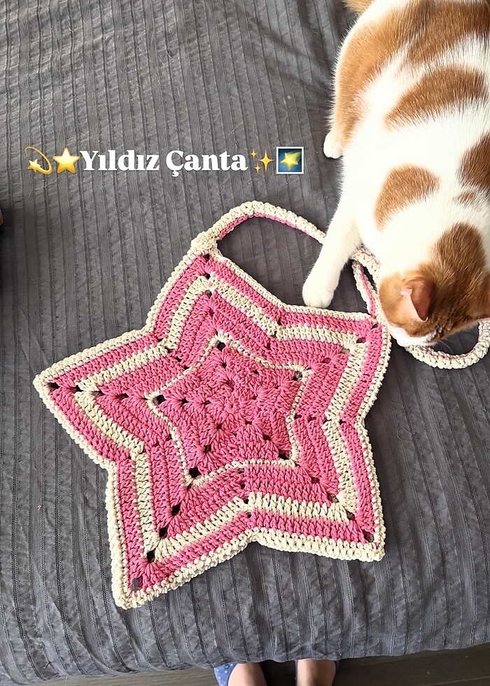 Tığ işi Makrome Yıldız Çanta