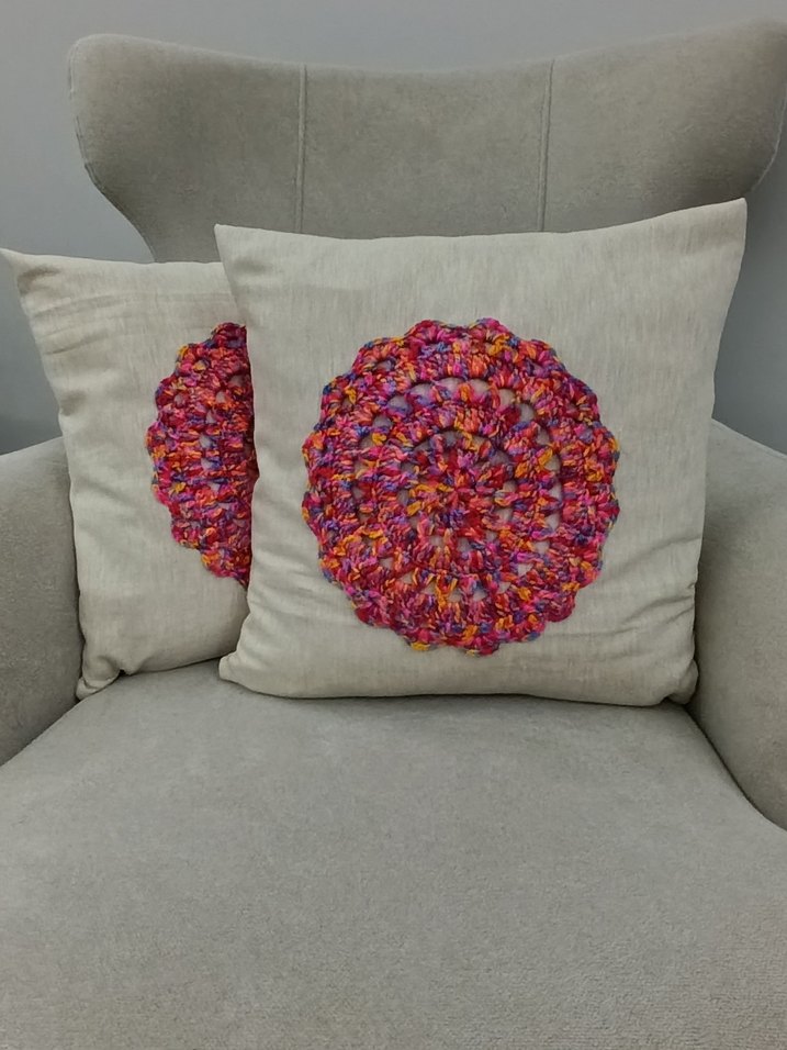Tığ işi Mandela Desen 2 li Takım Kırlent Kılıfı