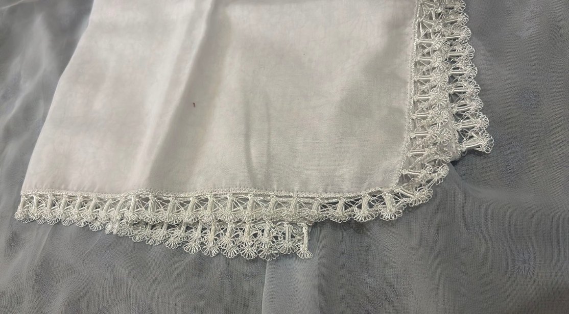 Tığ oyası beyaz yazma yemeni