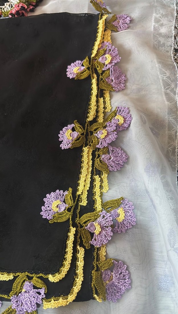 Tığ oyası yazma yemeni fular
