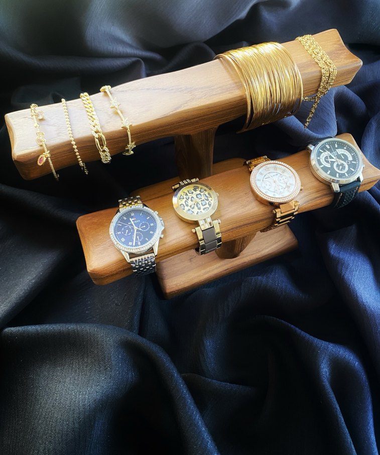 Günlük kullanım için klasik bohem tarzda, parlak altın renkte zincir detaylar için takı standı (TİK) agacından