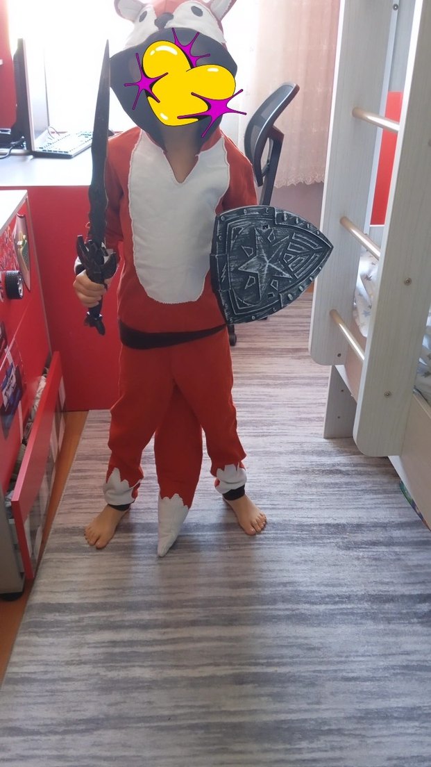 tilki kostümü özel dikim 7 yaş penye kumaş terletmez temiz ürün elindekı kalkan ve kılıç fıyata dahıl degıl