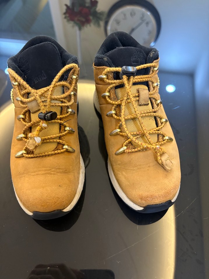 Bej renkli, bağcıklı, renkli baskılı erkek çocuk botları, rahat ve şık sokak tarzı için uygundur. Timberland markadır ve mağazadan alınmıştır. Çok rahat hafif ve su geçimez. Herhangi bir açılması vs kesinlikle yok.