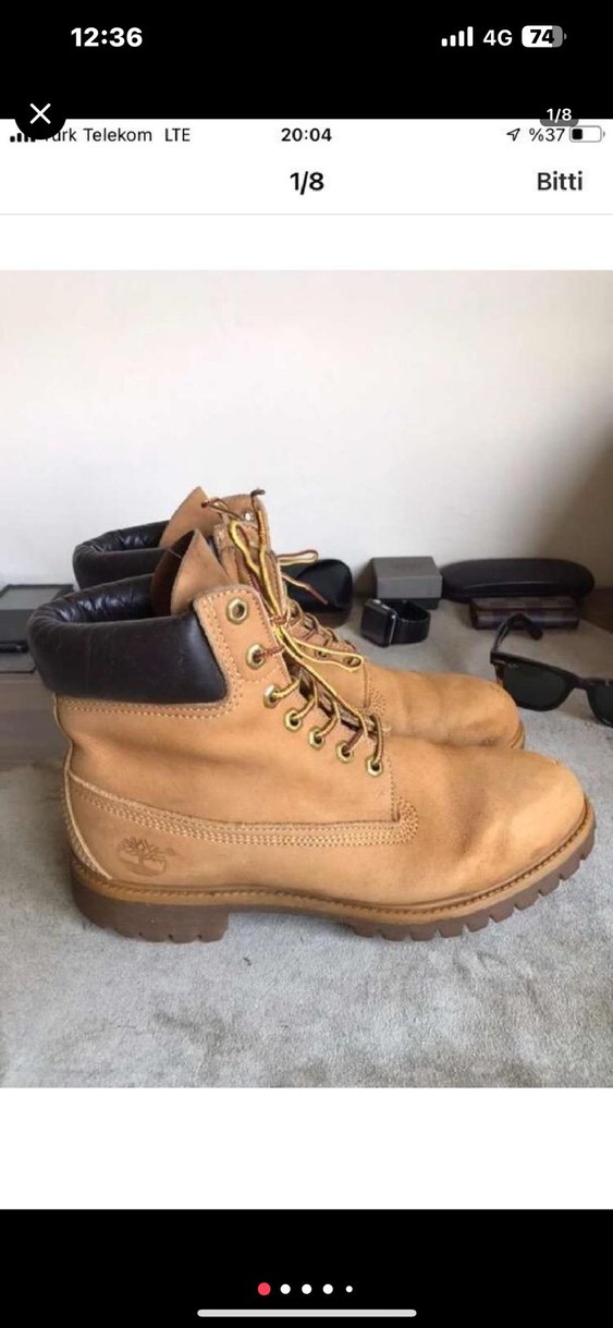 Tımberland 6.inc Bot taba rengi 42,5 Numara temiz kullanılmıştır yırtık patlak vs yoktur kullanıma bağlı çizikler ve minik sürtmeler var sadece ( Made İn USA ) Amerika’dan alınmıştır bilginize ilginiz için teşekkür ederim.