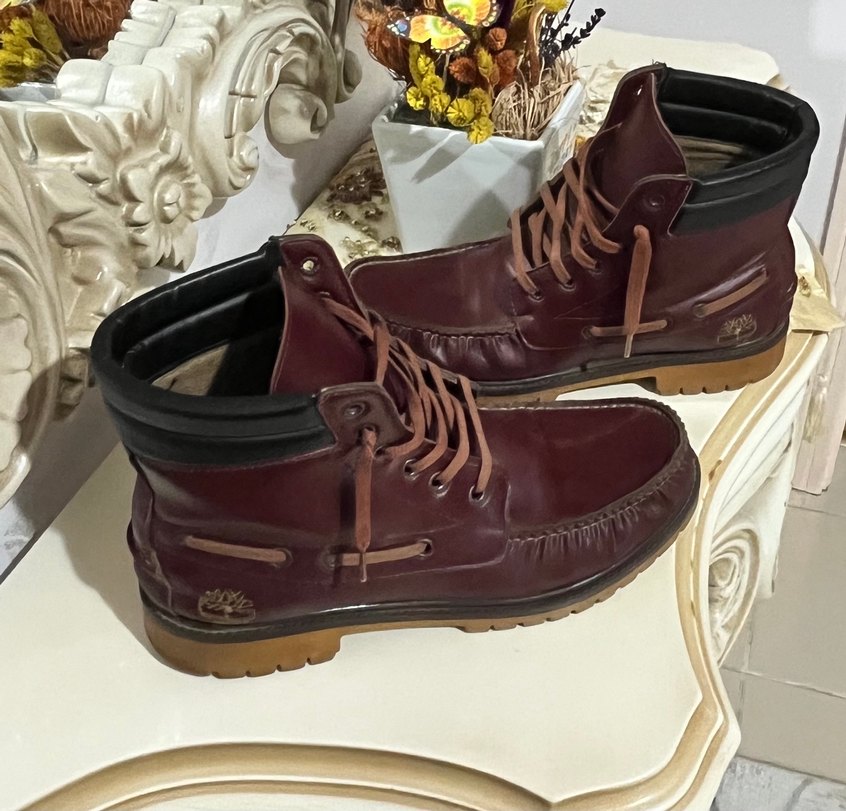 Timberland Bordo renkte, deri malzemeden bağcıklı erkek botlarıdır. Günlük rahat sokak stili için uygundur, klasik ve şık bir görünüme sahiptir.