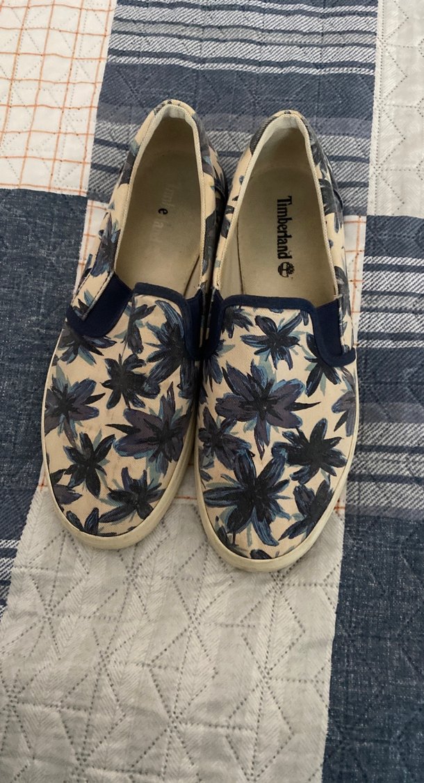 Timberland erkek espadriller, koyu mavi bağcıklı çiçek desenli tekstil malzemeden, günlük kullanım için uygun. Ürün orjinaldir