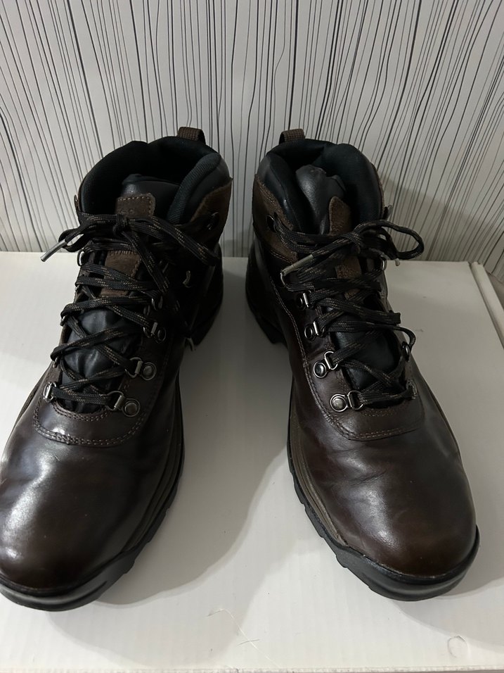 Timberland Koyu kahverengi deri erkek botlar, tokalı ve minimalist tasarıma sahip 10,5 numara diğer deyişle 44.5 Dar kalıp Waterproof