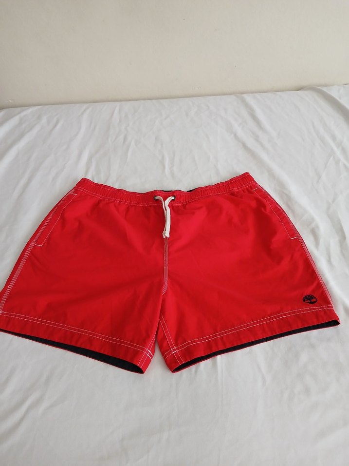 TİMBERLAND ORJİNAL DENİZ ŞORTU Canlı kırmızı renkte, düz desenli, bağcıklı bel detaylı, erkekler için mini şort mayo. Plaj ve sokak tarzına uygun kusuru yoktur yeni gibidir L beden ölçüler fotoğrafta var ölçüye göre alım yapınız diğer ürünlerimize bakmayı unutmayın