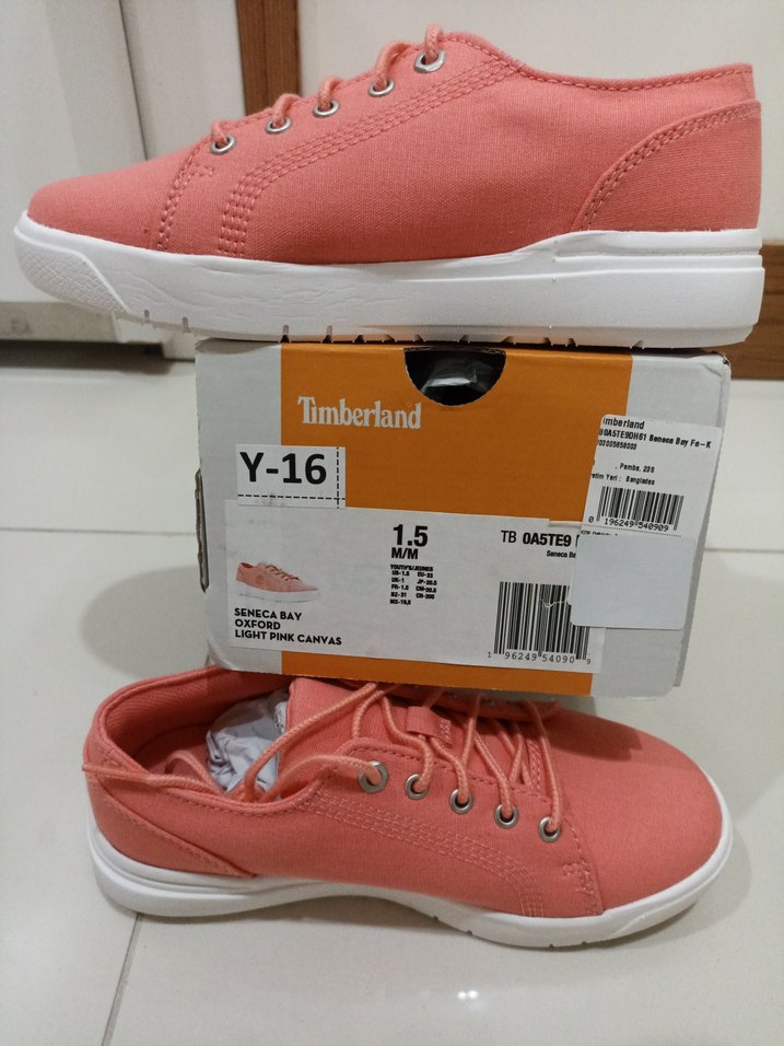 Timberland pembe kız sneaker, blok topuklu ve kauçuk tabanlıdır. Hafif baskılı kanvas üst yüzeyiyle dış mekanlar için uygundur. Model Y-16, 1.5 numara.