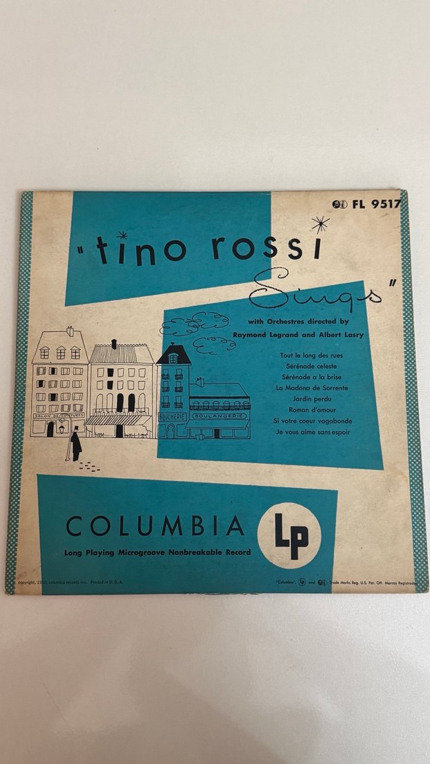 Columbia LP üzerinde Tino Rossi'nin Raymond Legrand ve Albert Lasry yönetimindeki orkestralarla şarkıları yer alıyor. "Tout le long des rues" ve "Sérénade céleste" gibi klasik parçalar bulunur.