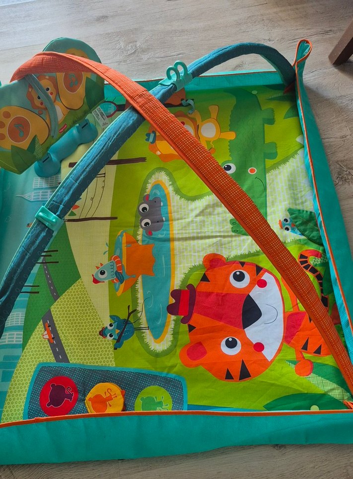 Yumuşak sentetik kumaştan yapılmış, renkli ve hayvan desenli bebek oyun matı, çocuklar için rahat ve eğlenceli bir alan sunar. oyuncaklar mevcut değil müzikli kısmı da tamir edilebilir çalışmıyor.