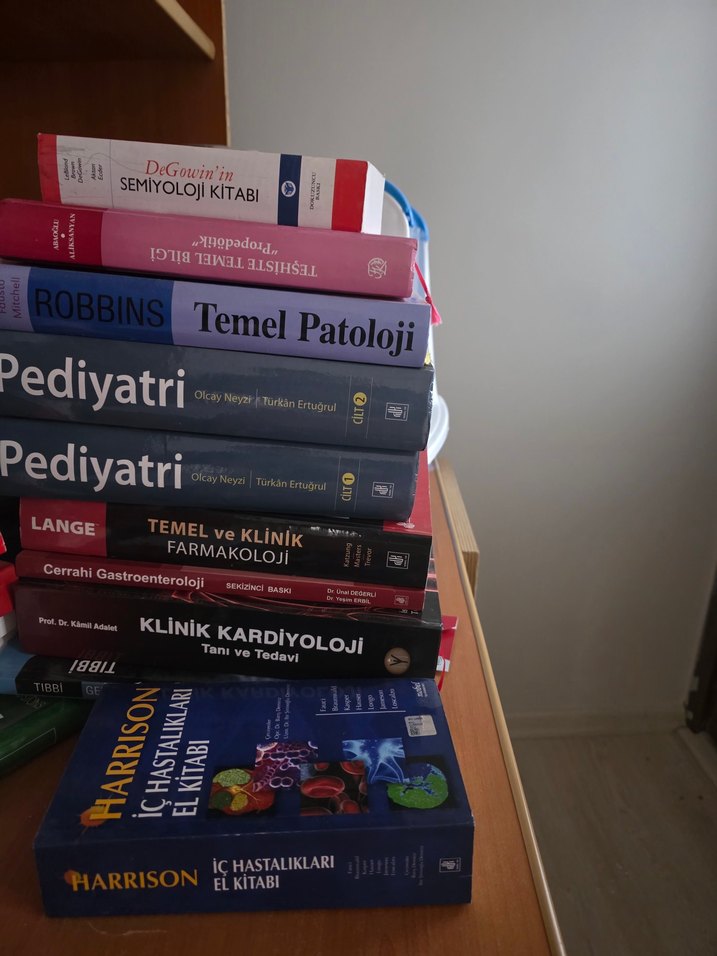Patoloji, farmakoloji, kardiyoloji, gastroenteroloji ve iç hastalıkları konularını içeren tıp kitapları seti, Robbins ve Harrison gibi başlıklar dahil.
