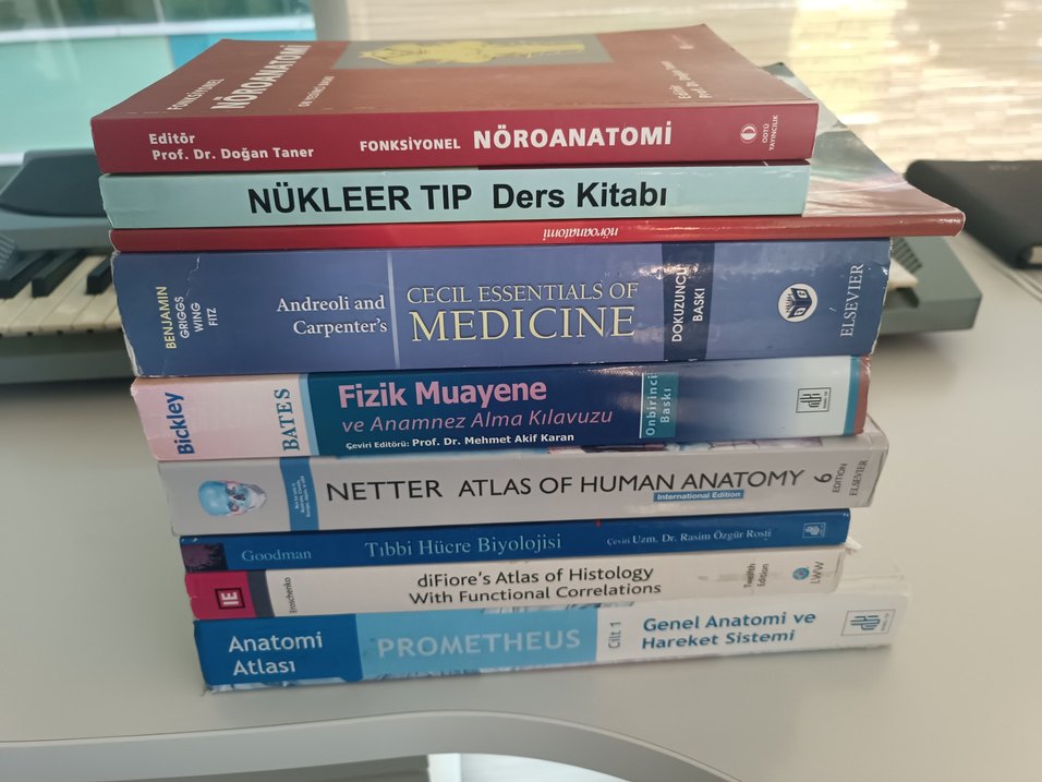 Tıp ve Anatomi Ders Kitapları Seti ilgilendikleriniz için fiyat sorabilirsiniz.. Nöroanatomi, nükleer tıp, genel tıp, fizik muayene, insan anatomisi, hücre biyolojisi ve histoloji konularını içeren tıp ders kitapları seti. ilgilendikleriniz için fiyat sorabilirsiniz bazılarının önemli noktalarının altı çizilmiştir ve notlar alınmıştır harici tüm çok temizdir.. CECIL ESSENTIALS OF MEDICINE / TÜRKÇE 1500 Prometheus Anatomi Atlası Cilt:1 750 diFiores atlas of histology with functional correlations 750 Tıbbi hücre biyolojisi 175 Netter Atlas of Human Anatomy International Edition 800 BATES FİZİK MUAYENE VE ANAMNEZ ALMA KILAVUZU 750 NÖROANATOMİ ŞEKİL ATLASI 30 Nükleer Tıp Ders Kitabı [ İ.Ü CERRAHPAŞA TIP FAKÜLTESİ ] 150 FONKSİYONEL NÖROANATOMİ 50