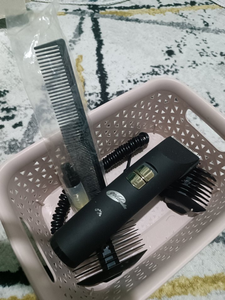 Gri saç kesme makinesi seti, tarak, ayarlanabilir koruyucular ve şarj kablosu içerir. ✂️ çok az kullanıldı