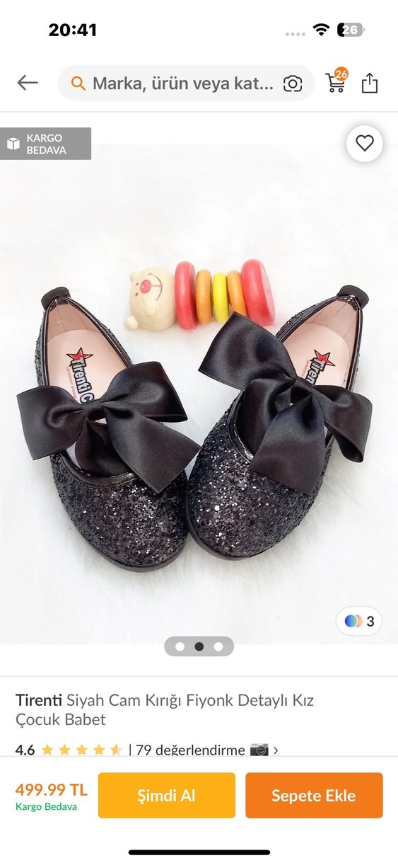 Tirenti Siyah Cam Kırığı Fiyonklu Kız Babet