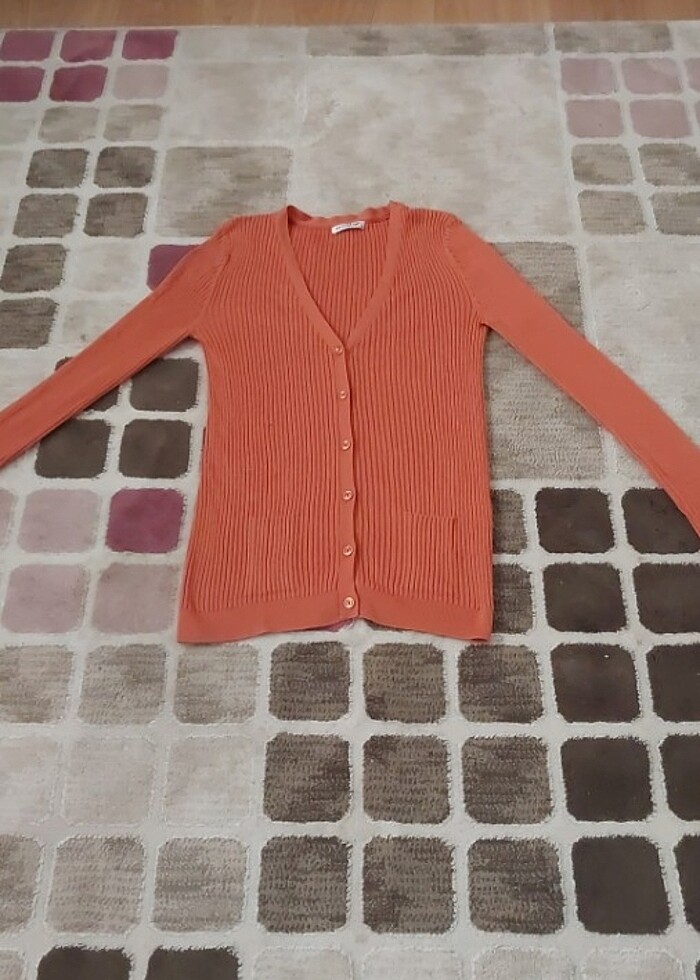 Hiç giyilmemiştir. İnce naif 4 mevsim giyilebilir önü boydan boya düğmeli önde iki tane cepleri olan t_shirt veya gömlek ile kombin yapılabilir.Rengi kiremit rengidir.