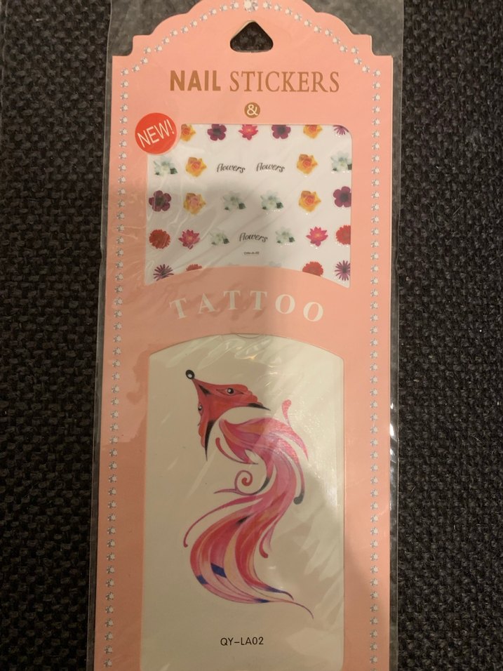 Sıfır ürün Çiçek desenli ve renkli tilki illüstrasyonlu pastel pembe tırnak stickerları ve geçici dövme seti