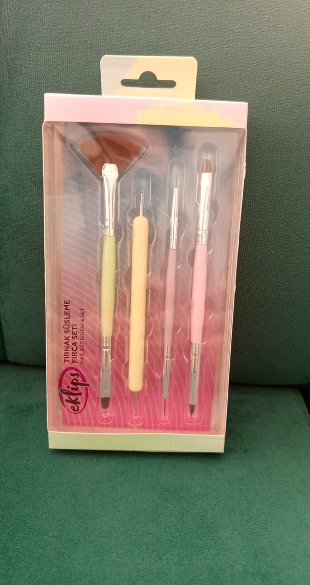 tırnak süsleme fırça seti 4 farklı fırçası ile tırnaklarda dilediğiniz şekli ve deseni yaratmaya yardımcı olur.Gratis ürünüdür kutusu hiç açılmamıştır ve kullanılmamıştır.