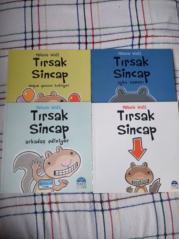 Tırsak Sincap karakterinin arkadaşlık, doğum günü ve uyku zamanı gibi konuları işleyen çocuk kitapları seti.