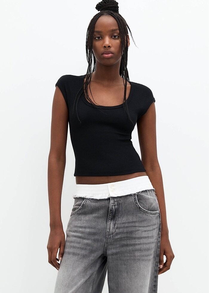 Pull and bear 7244/313 fitilli kısa kollu tshirt 1 defa kullanıldı kare yaka tişört