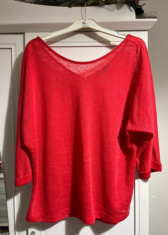 yarım kollu. biraz iç gösteriyor. yazlık bir tişört. sırtında ufak bir fermuarı var. sağlam, herhangi bir deformasyonu vs yoktur. standart beden.