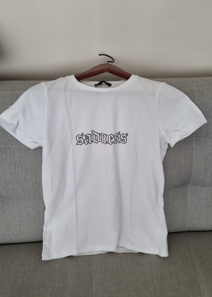 Gotik yazı fontlu. Hiç giyilmedi standart kalıp. yeni ürün ihtiyaç fazlası