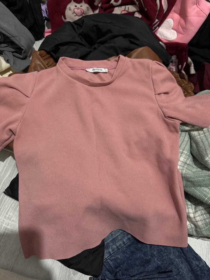 Pastel pembe renkte, yuvarlak yakalı, dar kesim ve normal boyda, yumuşak ve sıcak dokulu kumaştan yapılmış