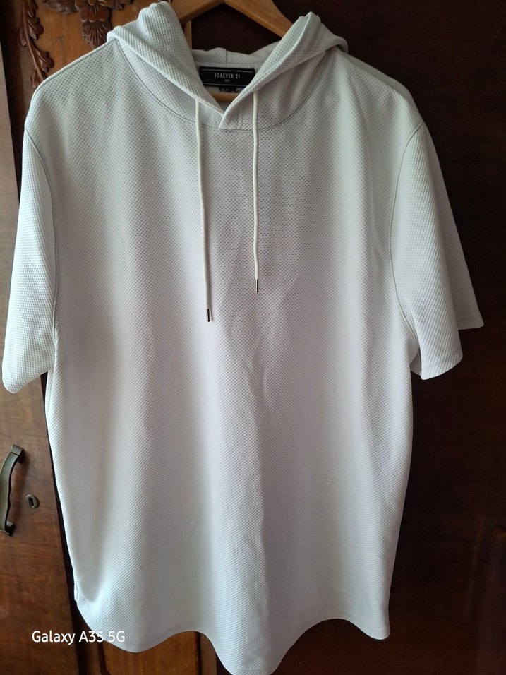 Amerika'dan alınmıştır yumuşak sentetik kumaştan, bol kesim ve beyaz kısa kollu kapüşonlu tişört. Rahat sokak stili için uygun.