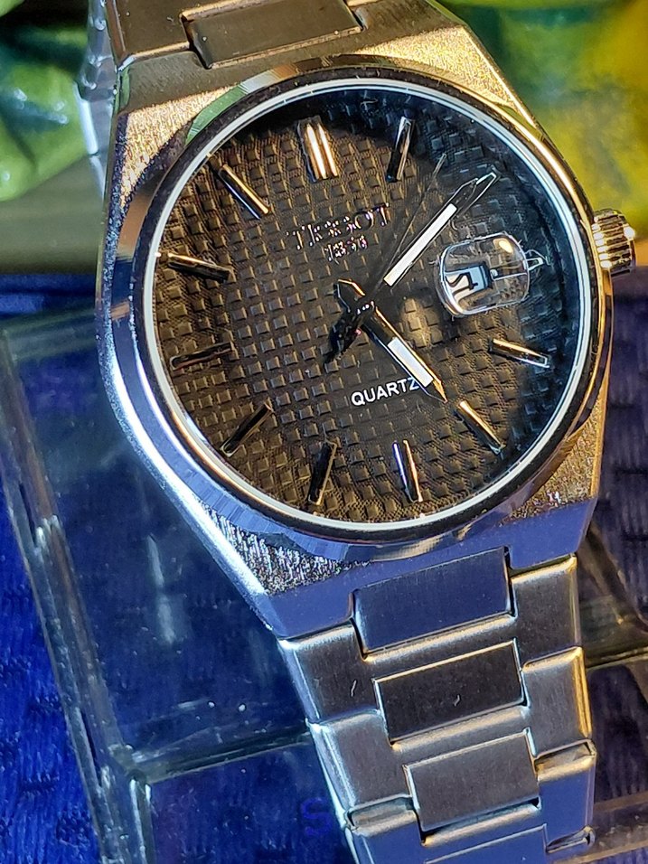 Bu klasik erkek saati, dokulu koyu gri kadran ve tarih göstergesine sahiptir. Metal bilezikli ve quartz mekanizmalıdır. ⌚