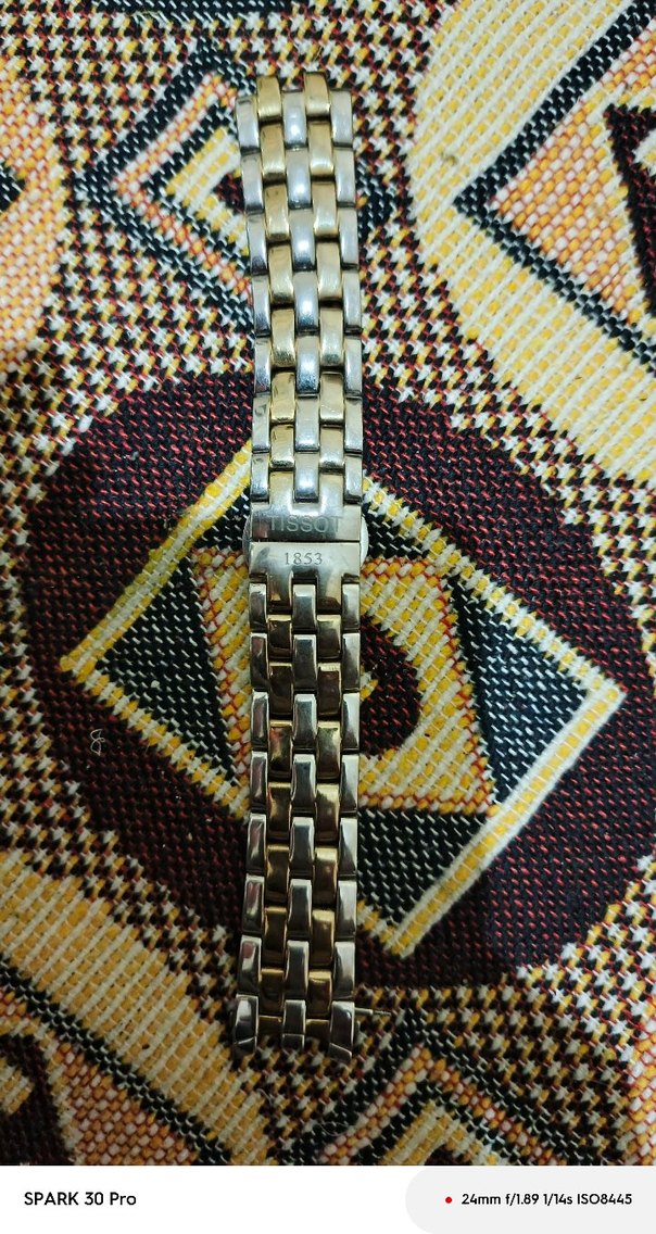 Tissot markalı metal saat kordonu, çok renkli zincir tasarımı ve vintage dokunuşlarıyla dayanıklı ve şık bir seçenektir. ⌚