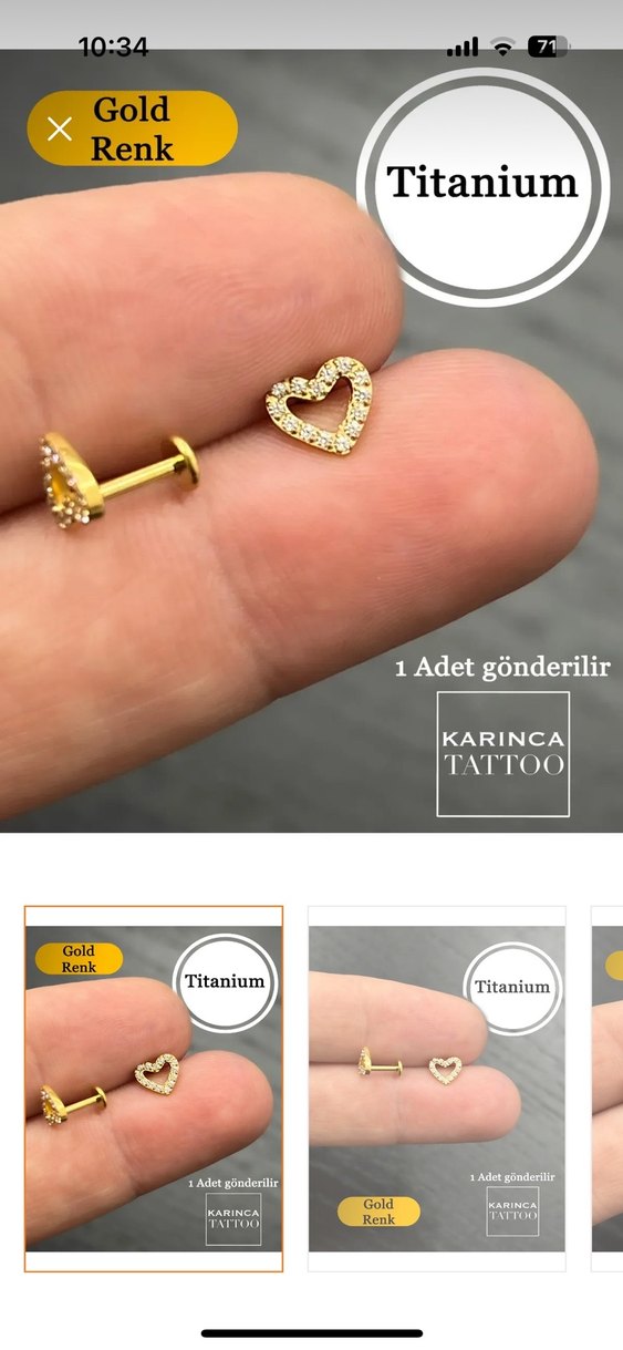 Titanyum kalp Piercing 6mm