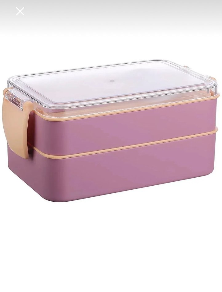 Pastel mor renkte, çok katmanlı ve kilitli şeffaf kapaklı yemek kabı. Çok az kullanılmıştır.Temiz ve sağlam