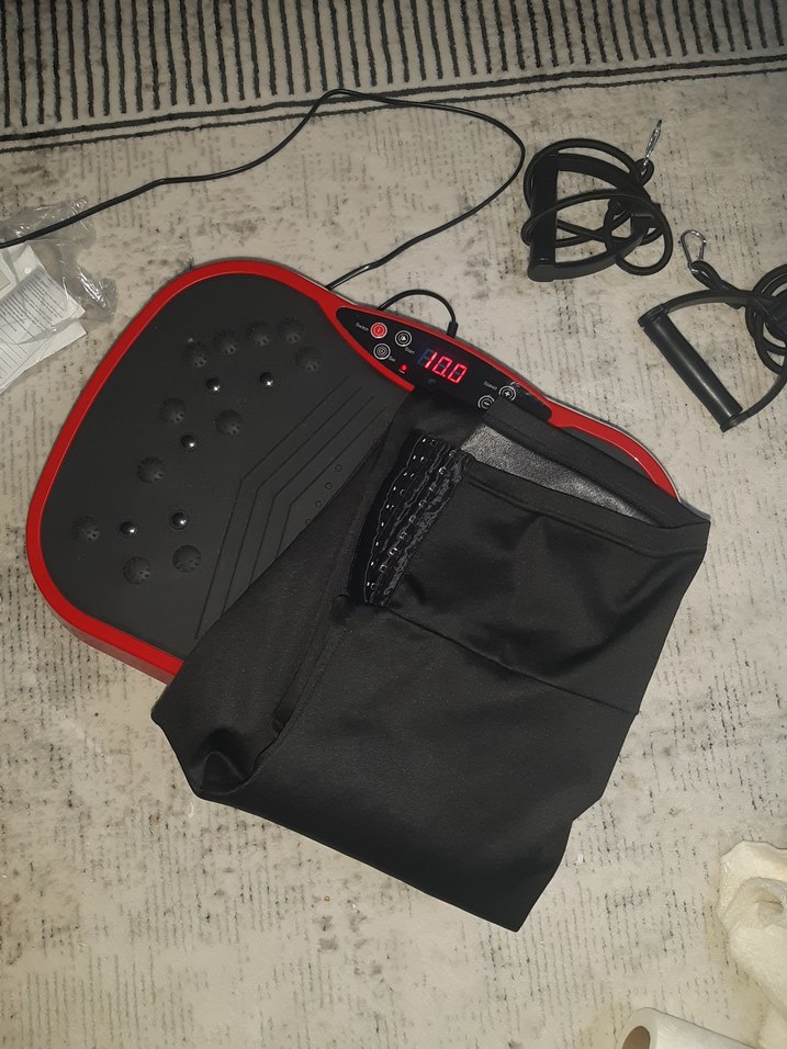 Dijital ekranlı, elektironik titreşimli zayıflama aleti Evde kullanıma uygun, kompakt egzersiz aleti. ️zayıflama taytiyla cokniyi durumda kendi sağlık sorunlarım dan dolayı kullanamiyorum direnç bantları bu modelde kenarlarda takma halkası yoktur plastik aksamlarına takılıyorsun resimde takılan yer