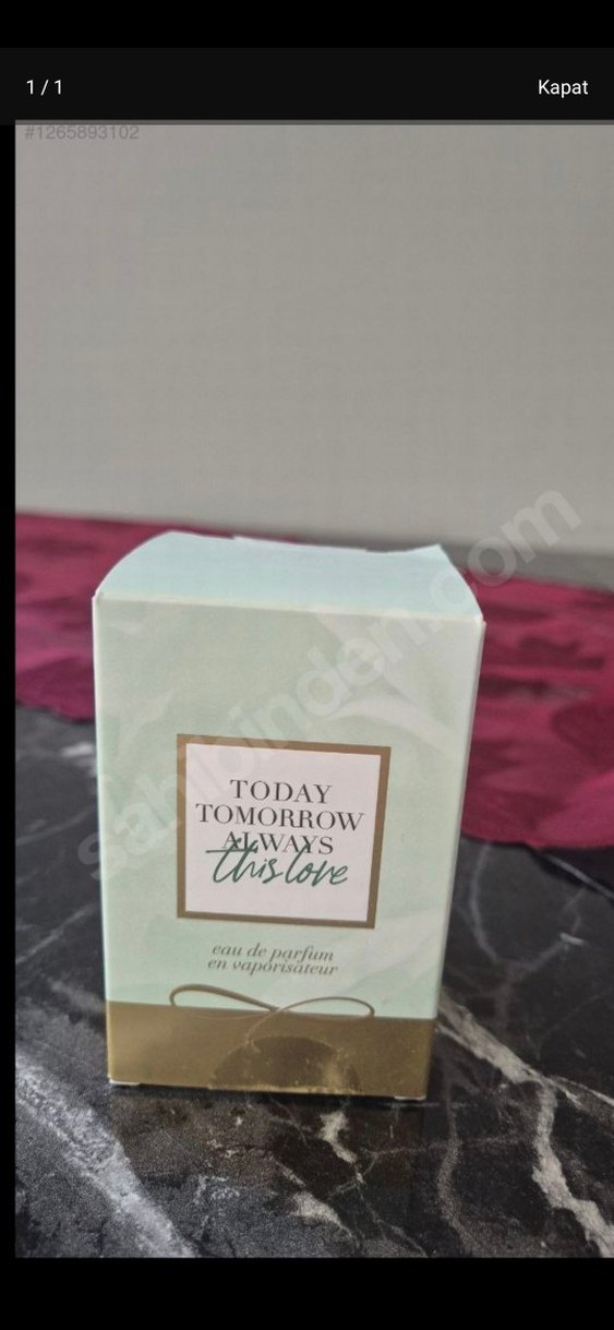Today Tomorrow Always, kadınlar için hafif ve zarif kokulu eau de parfum, açık yeşil ve altın renkli kutuda.