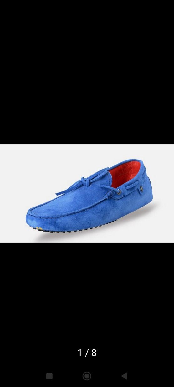 Mavi süet malzemeden yapılmış, kemerli erkek loafer ayakkabı. Minimalist ve çağdaş tasarımıyla günlük kullanıma uygundur. Trendy ve renkli bir görünüm sunar.