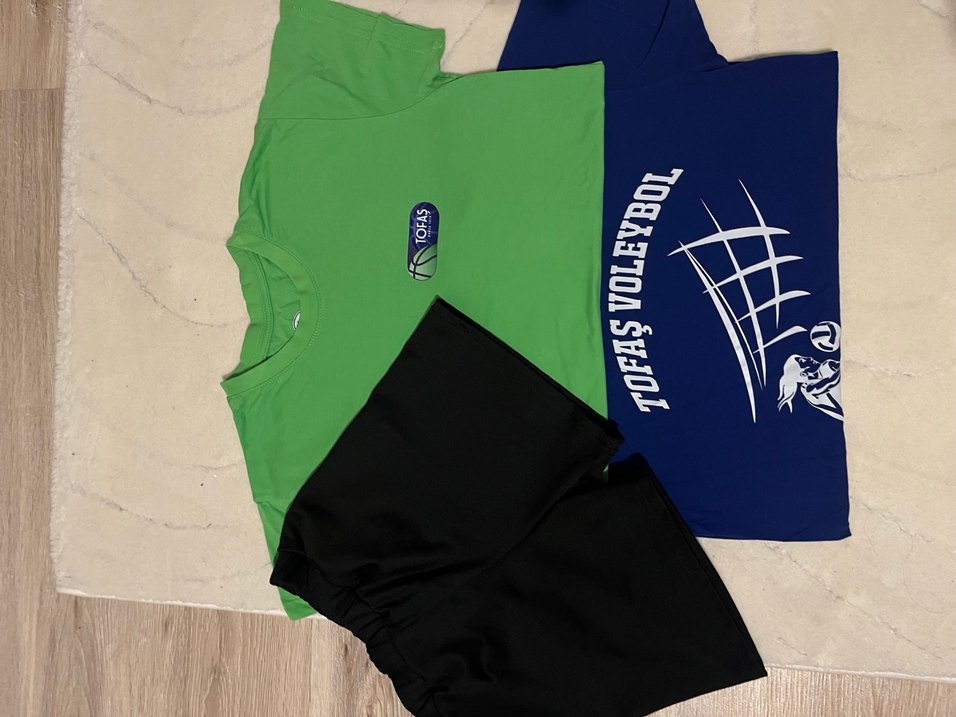 Tofaş voleybol kız çocuk iki tişört ve 1 şort, takım halinde 1 kez giyildi m beden