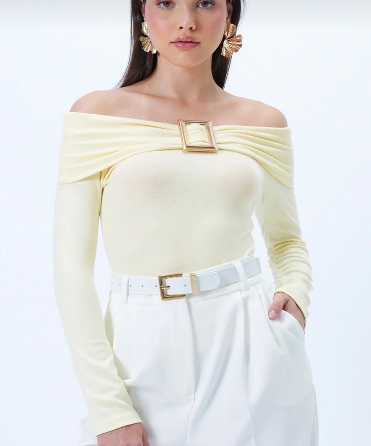 Kemer detaylı, uzun kollu, tereyağ sarısı bluz. Hiç giymedim. S beden.
