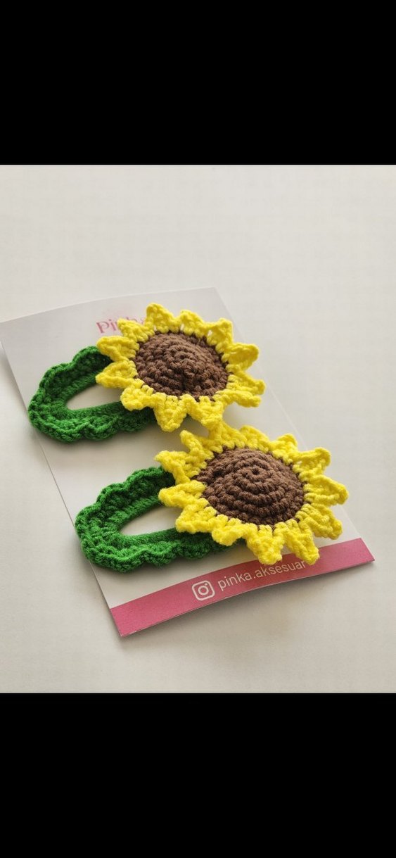 Canlı sarı ve yeşil renklerde, örgü ayçiçeği desenli, bohem tarzı çocuk saç tokası seti. instangramdan da bana ulaşabilirsin toplu sipariş alınır