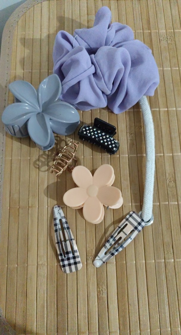 kadın kepçeli toka seti 4 adet kepçeli toka 2 adet çıtçıtlı toka 1 adet lila renginde bandaj toka hiçbirinin hiçbir sorunu yoktur ürünler kusursuzdur set şeklinde satıyorum ben kapalı olduğum için çok kullanmıyorum alan kız kardeşime şimdiden hayırlı olsun