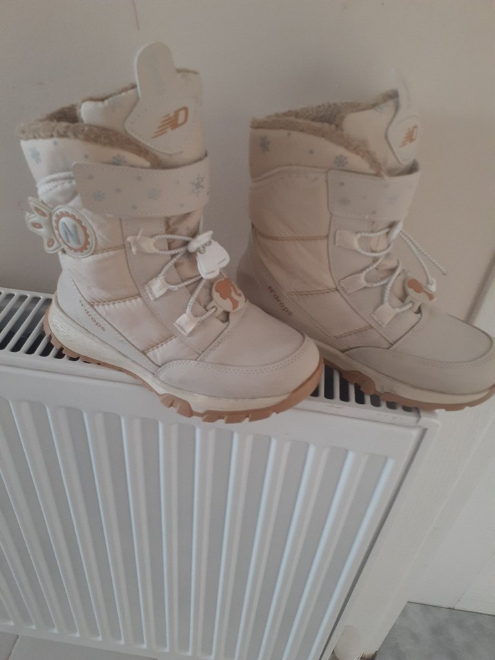 Yumuşak kürklü, tokalı ve desenli beyaz kız çocuk botu, rahat normcore tarzında.Ürün görseldeki gibi temiz hiç bir sorunu yok kizima küçük olduğu için satiyorum İADEMİZ yok bilginize