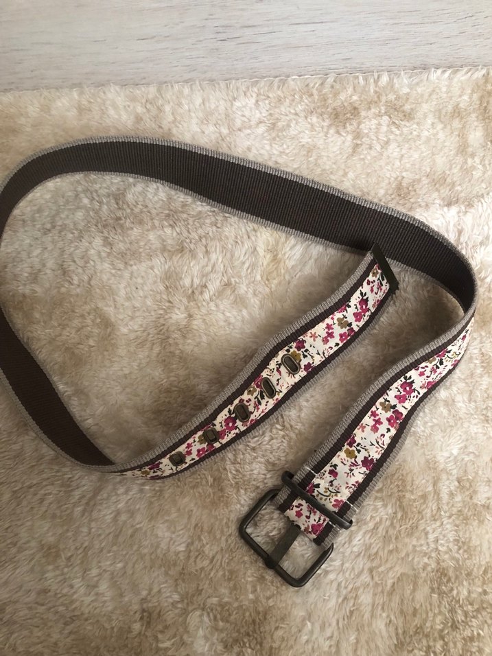 Tokalı, kahverengi kemer, sentetik kumaş üzerine çiçek desenli şerit ile bohem ve retro tarz için uygun.