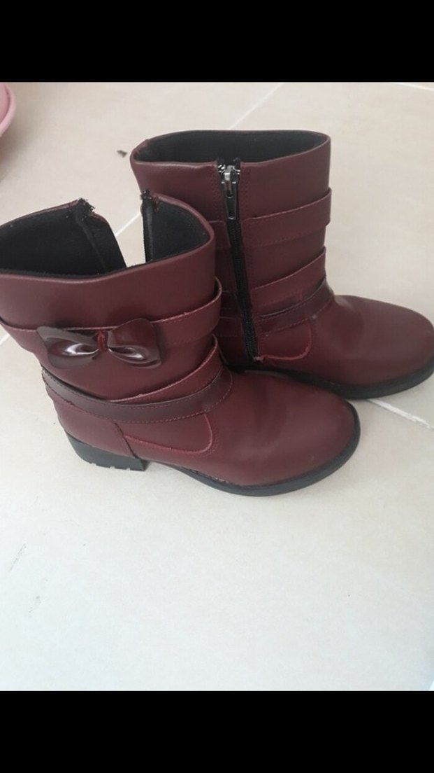 Tokalı, bordo deri biker botlar, blok topuklu ve yan fermuarlı. Rahat ve şık, günlük kullanıma uygun.