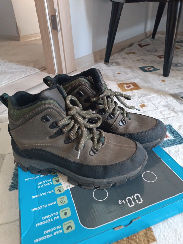 Tokalı, baskılı detaylı gri ve kahverengi kauçuk botlar, trend sokak stili için uygun. Sağlam bağcık ve dayanıklı tabana sahip.