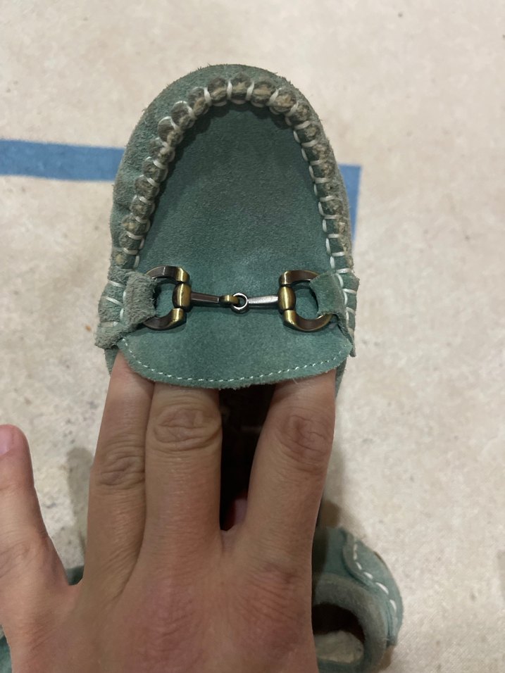 Tokalı detaylı, süet malzemeden yapılmış turkuaz renkli erkek loafer ayakkabılar, bohem tarzda ve desensizdir. Urünü ben de burdan aldım, yeni gibidir