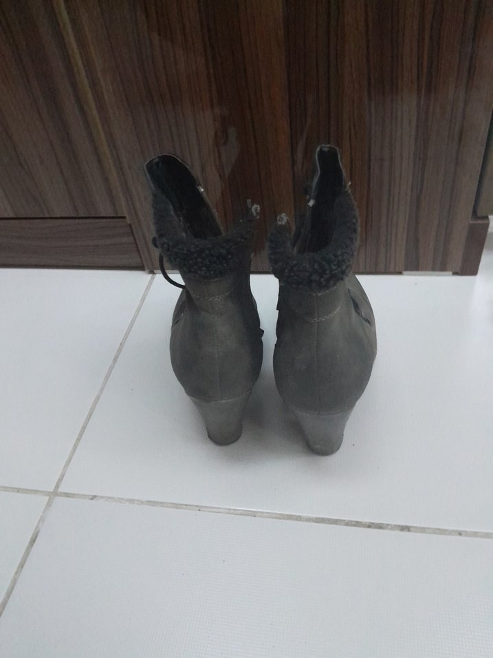 Tokalı Gri Kadın Dolgu Topuk Botları