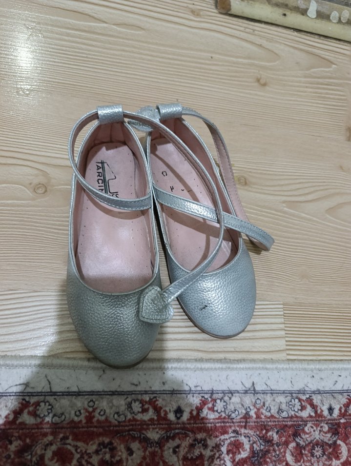 Tokalı bantlı ve kauçuk tabanlı gri kız çocuk babet ayakkabı, sade ve şık bir görünüme sahiptir.