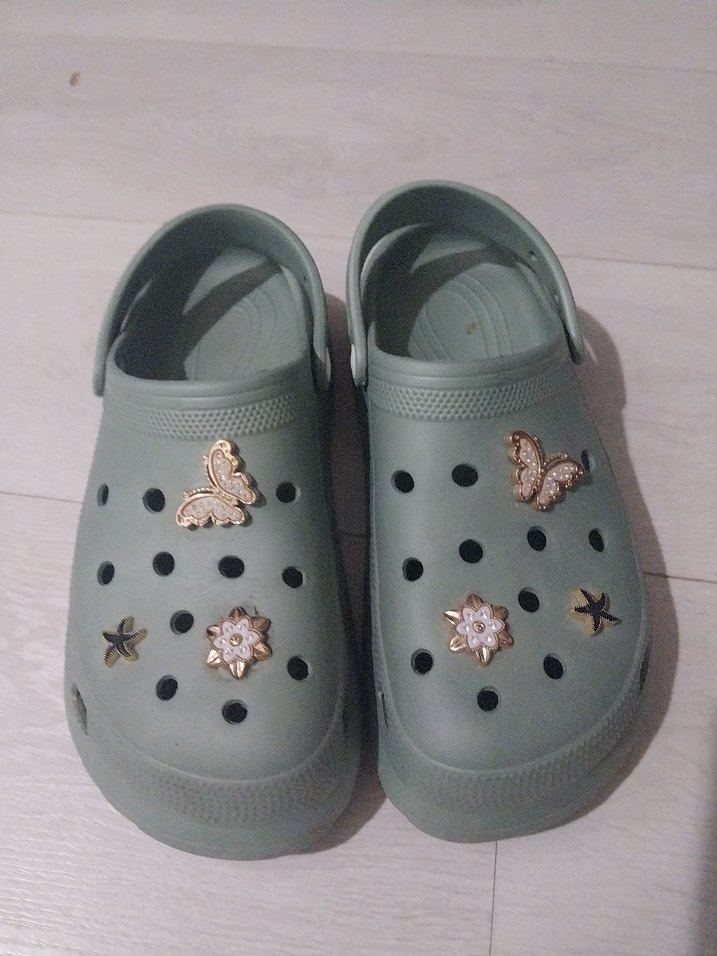 Tokalı, gri platform topuklu kadın terlikler, kauçuk malzemeden üretilmiş ve nakışlı süslemelere sahip. Minimalist ve bohem tarz için uygun