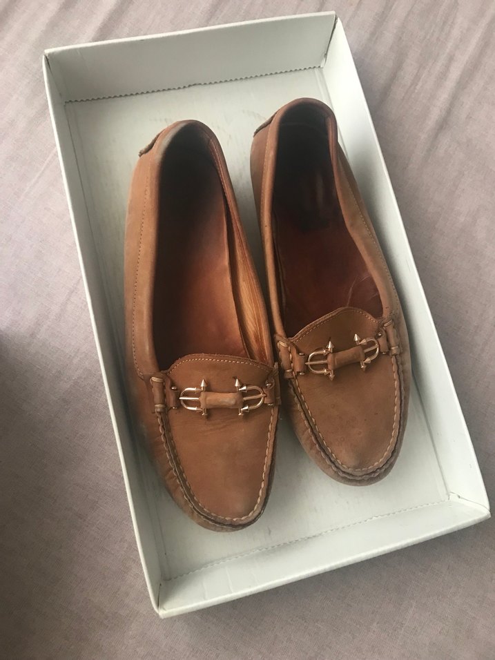 Süet kadın loafer, tokalı ve blok topuklu, parlak yüzeyli klasik tarzda günlük kullanım için uygun.