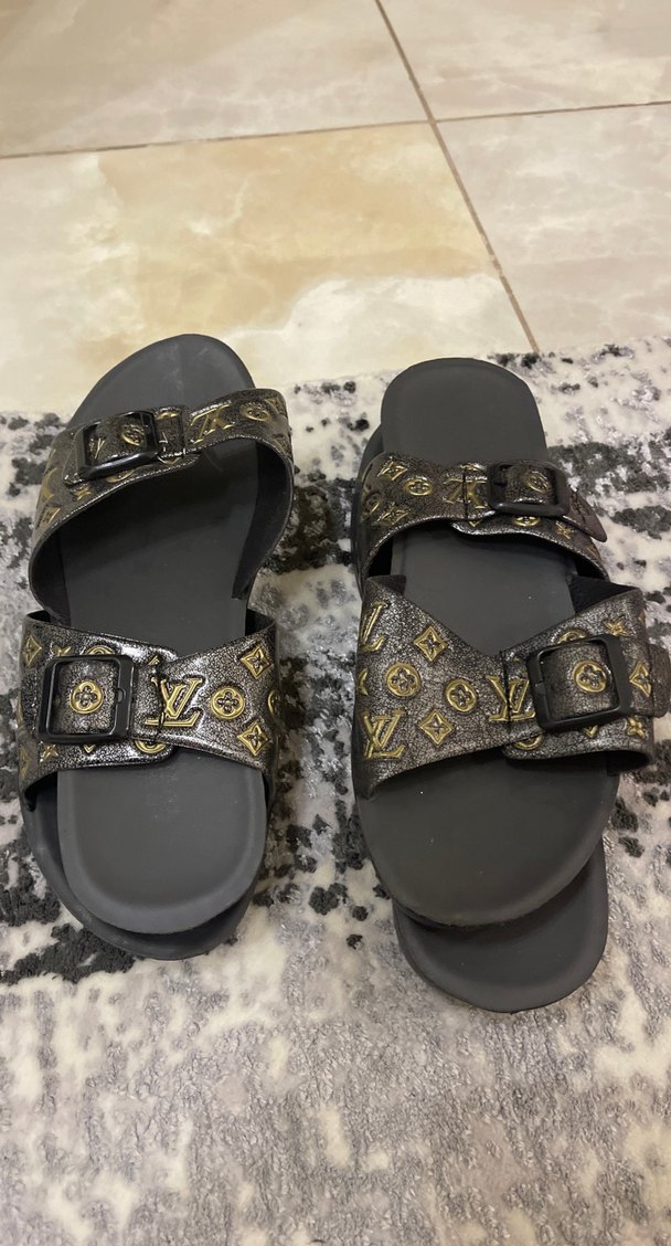 Tokalı Kadın Platform Terlik Gri Altın